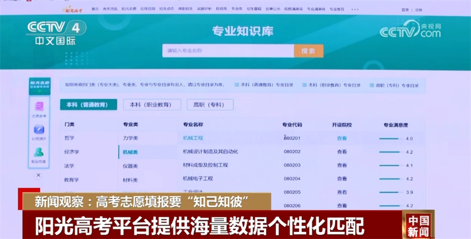 今年,教育部首次在“陽光高考平臺”推出免費(fèi)的陽光志愿信息服務(wù)系統(tǒng),將海量數(shù)據(jù)系統(tǒng)集成,進(jìn)行個性化匹配推薦,多方面幫助考生了解學(xué)校和專業(yè);同時還將舉辦“高考志愿填報(bào)云咨詢周”活動,組織各省級招生考試機(jī)構(gòu)和高校通過文字問答、視頻直播等方式,為全國考生和家長提供志愿填報(bào)咨詢指導(dǎo)公益服務(wù)。