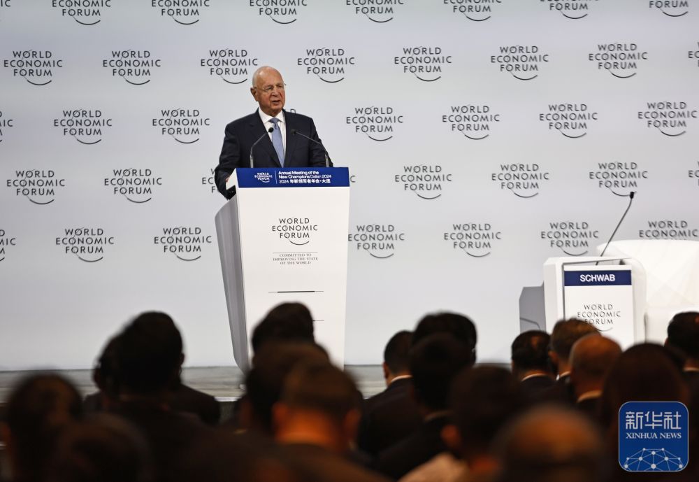 ↑ 6月25日,世界經(jīng)濟(jì)論壇主席施瓦布在夏季達(dá)沃斯論壇上致辭。
