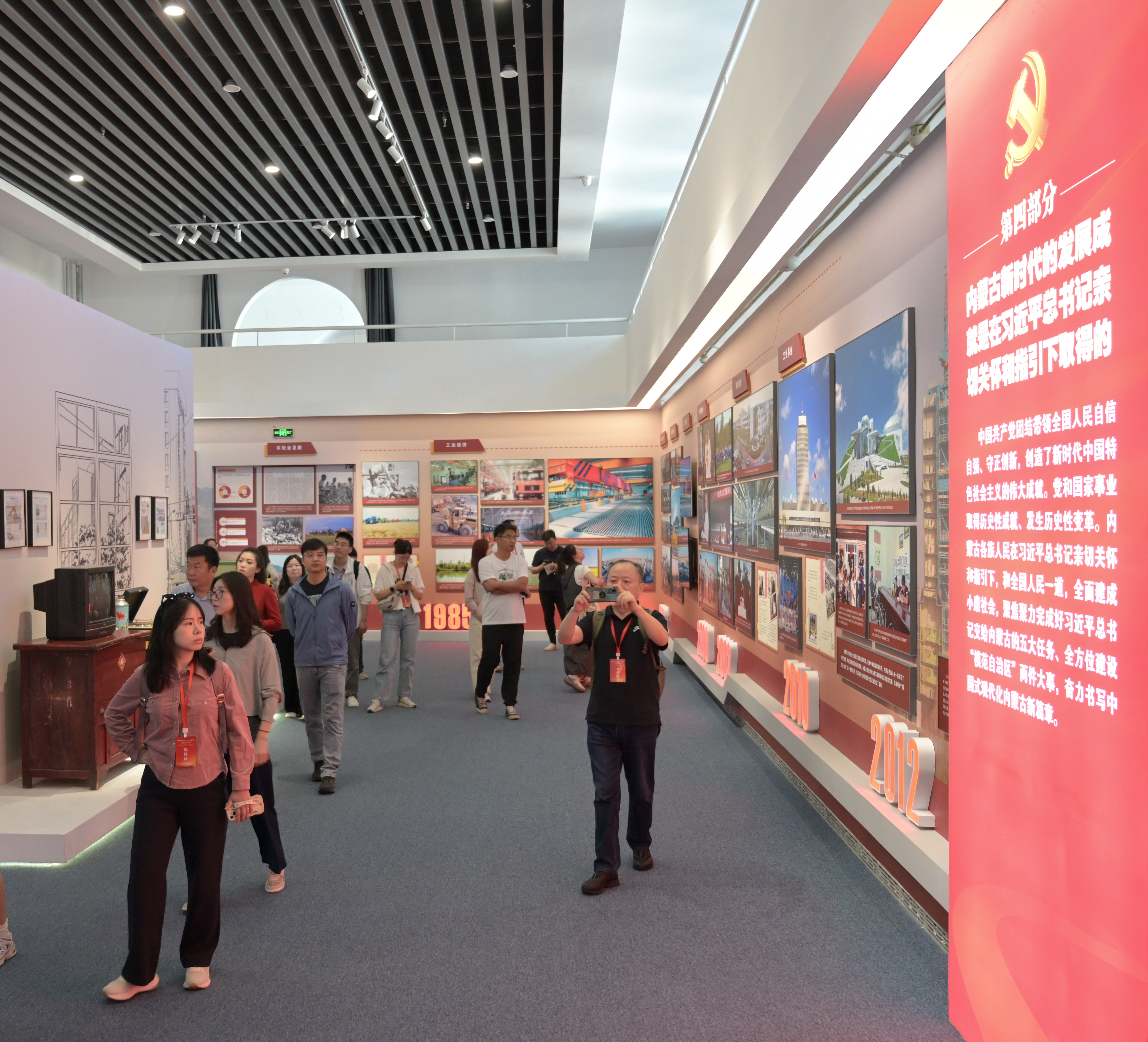 采訪團參觀“感黨恩、聽黨話、跟黨走”主題展。