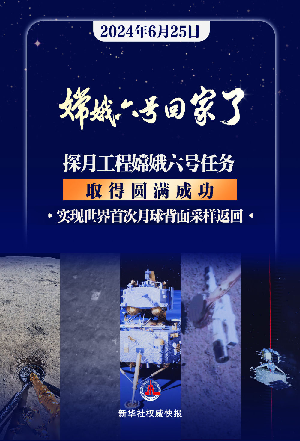 從5月3日成功發(fā)射到6月2日精準(zhǔn)著陸在月球背面“挖寶”,再到6月25日順利著陸“回家”,嫦娥六號每一個(gè)“動(dòng)作”環(huán)環(huán)相扣、順利進(jìn)行,這場長達(dá)53天的太空探索終獲成功!