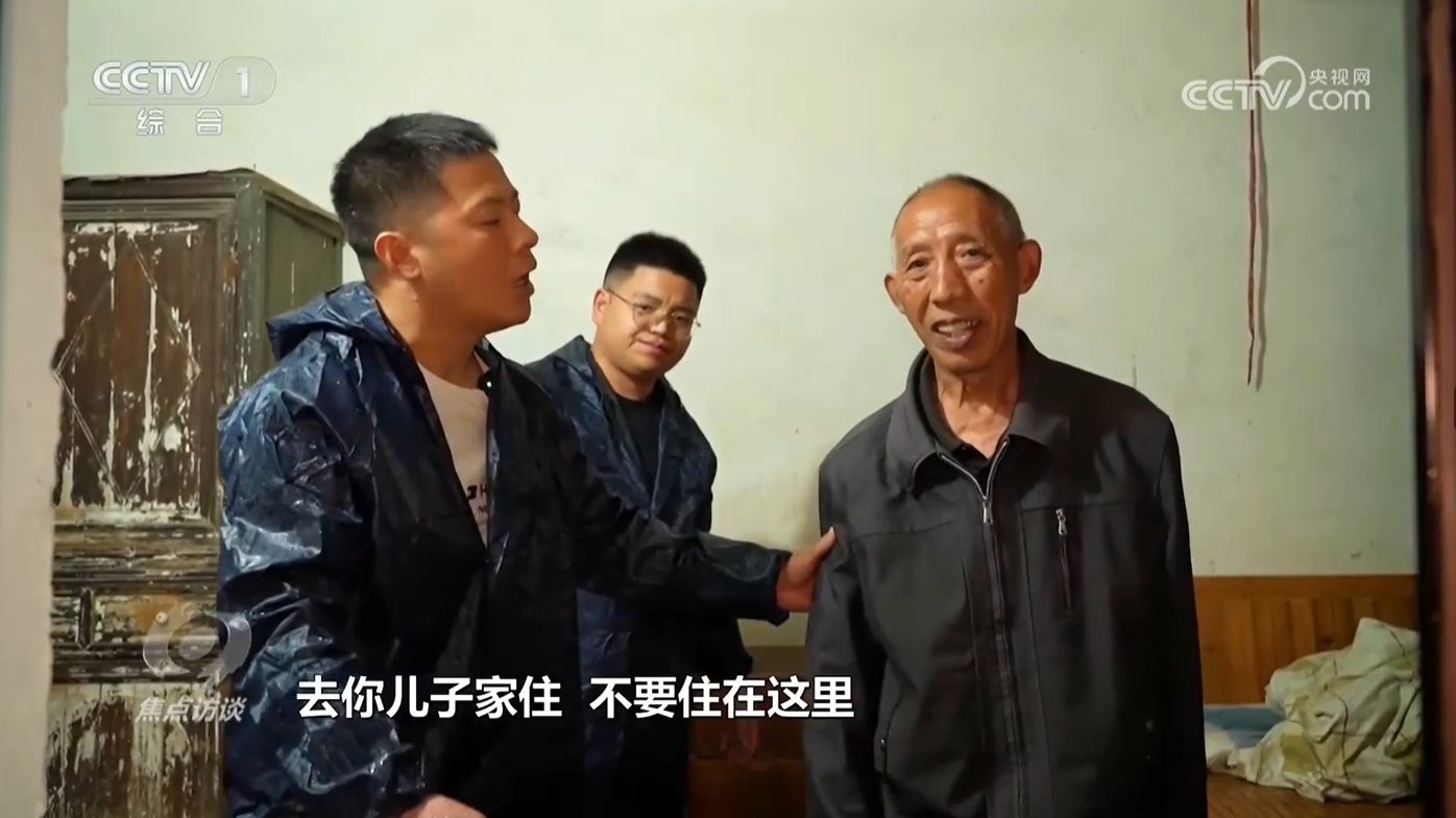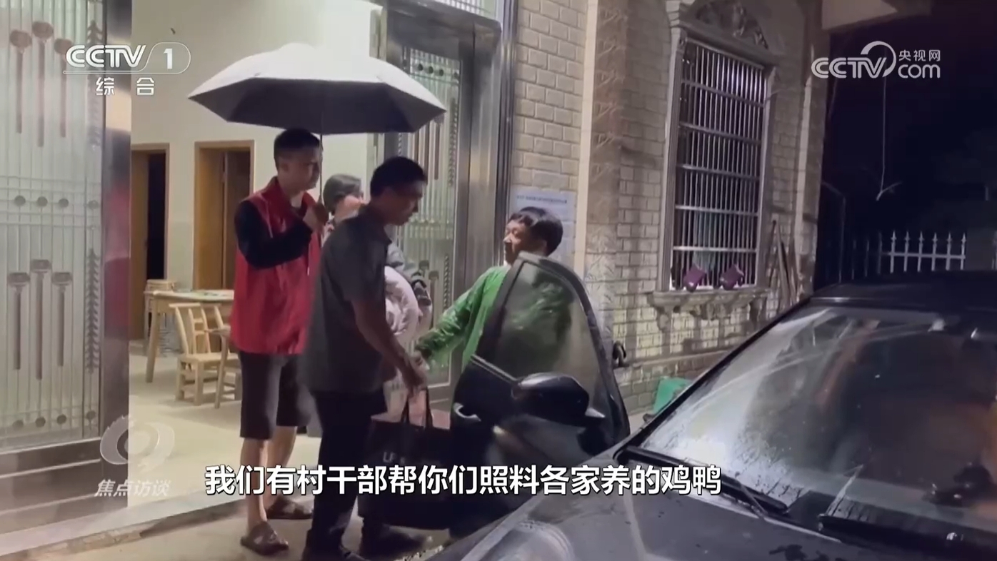 在鎮(zhèn)村干部的耐心勸說下,這位村民答應(yīng)和妻子一起去孩子家里住。老人看不清夜路,鎮(zhèn)村干部就分工合作,一人背、一人扶,并安排了車子進(jìn)行護(hù)送。