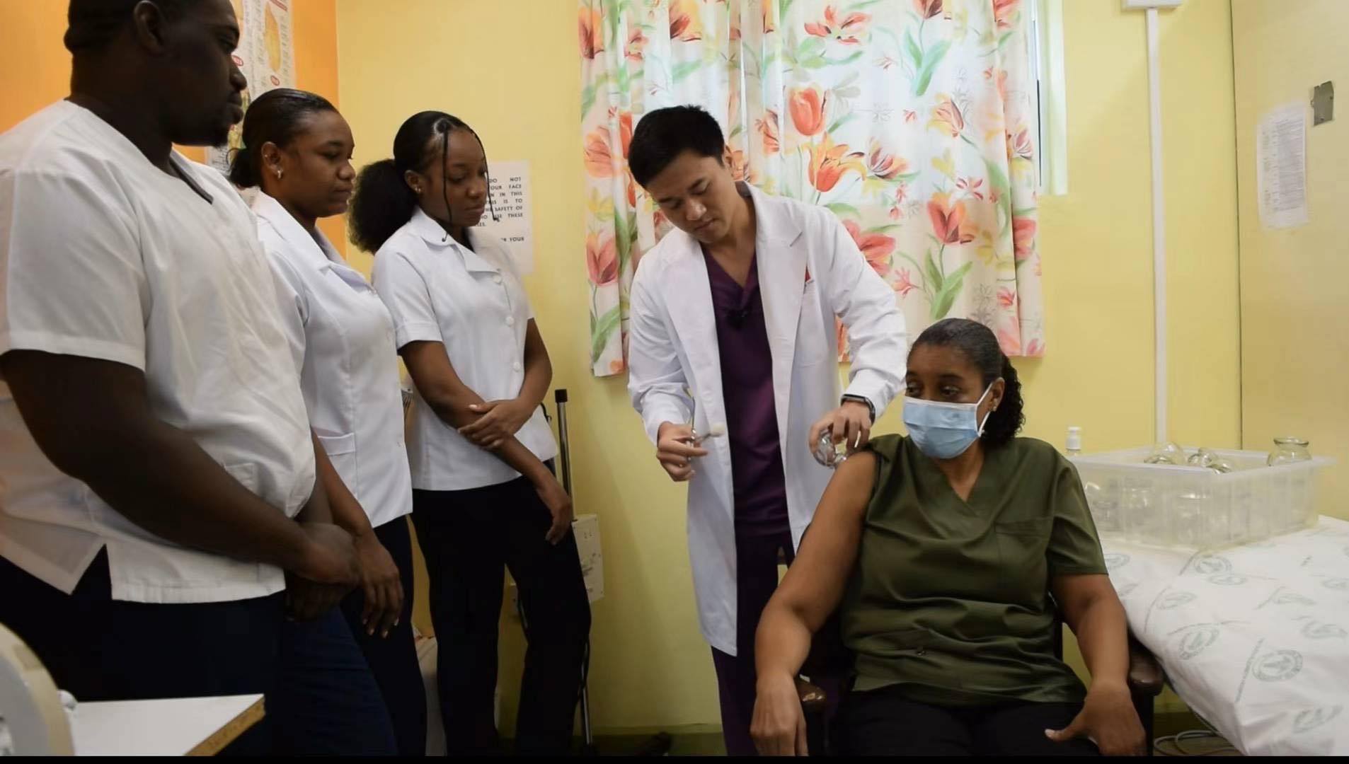 劉麗萍(左一)開(kāi)展巴巴多斯第一例超聲造影技術(shù)