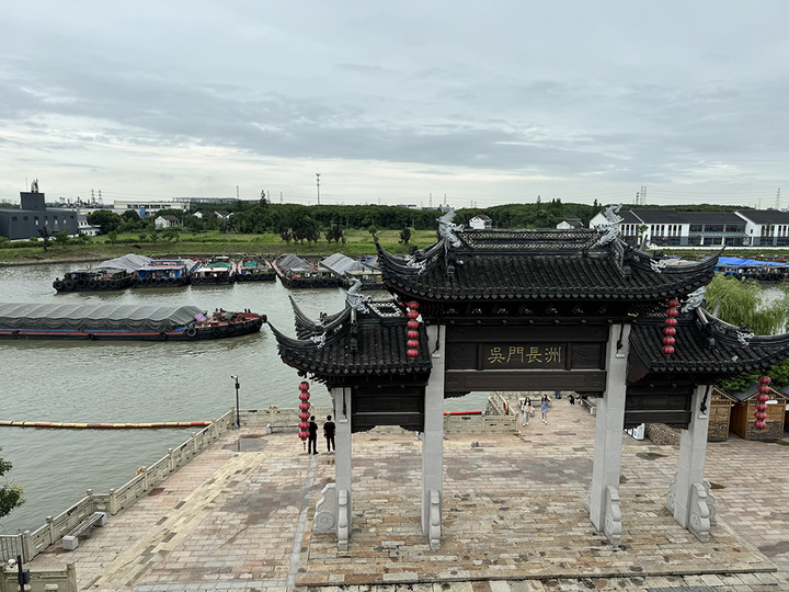 行走在運河公園,亭、臺、樓、閣錯落有致,碑、牌、匾、聯(lián)引人思緒。登望運閣極目遠眺,河面上舟楫如織。作為大運河最繁忙的河段之一,每天,有數(shù)千條貨船從這里穿行,他們在“吳門長洲”的石坊前劃過的一瞬間,仿佛古今同框,一眼千年。