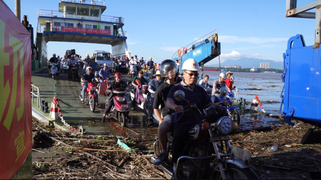 7月3日開始往來于江西九江市區(qū)與江新洲的渡輪比以往繁忙得多隨機(jī)詢問乘坐輪渡的人十有八九會(huì)回答“我回家防汛去!”