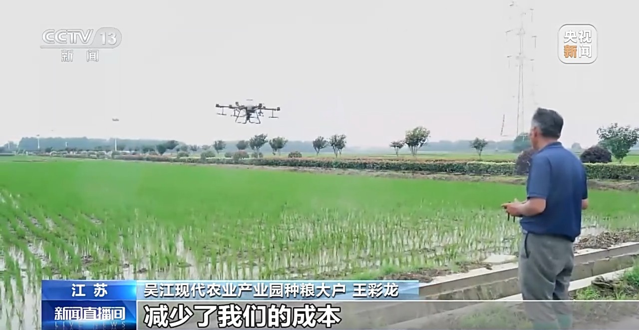 吳江現(xiàn)代農(nóng)業(yè)產(chǎn)業(yè)園種糧大戶 王彩龍:以前我們打汽油充電的話,成本一天至少在150塊左右,現(xiàn)在用了這個充電樁,在15到20塊之間吧,減少了我們的成本。