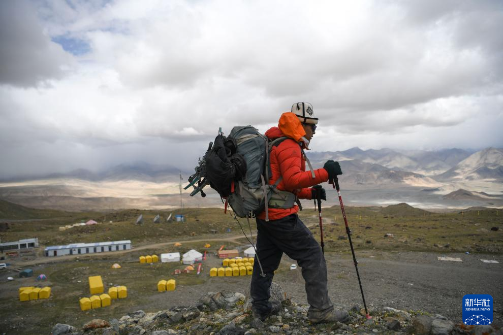 7月5日,完成一次海拔約5670米的慕士塔格峰C1營地物品轉(zhuǎn)運后,塔西巴伊在下山途中。新華社記者 胡虎虎 攝