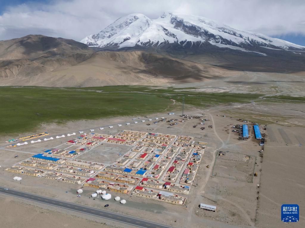 塔西巴伊家住新疆慕士塔格峰腳下的阿克陶縣布倫口鄉(xiāng)蘇巴什村三小隊(7月2日攝,無人機照片)。新華社記者 胡虎虎 攝