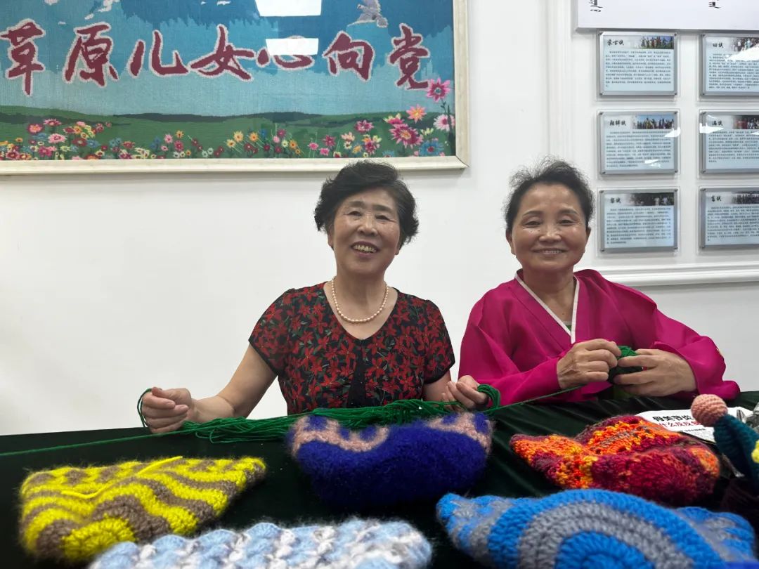 民族工藝傳承區(qū)里,志愿者高娃帶領(lǐng)圍坐桌前的“同學(xué)們”編織各類毛線織品,絲線繡出來的花鳥圖案引起記者們的注意。朝鮮族居民李貞子和漢族居民劉海燕是“老搭檔”,屬于“零基礎(chǔ)”學(xué)員的她們連續(xù)多年堅持每周上課,即便沒有課程也會來活動中心相互切磋。現(xiàn)在,課堂上教過的各式民族工藝織品,二人都能信手拈來。
