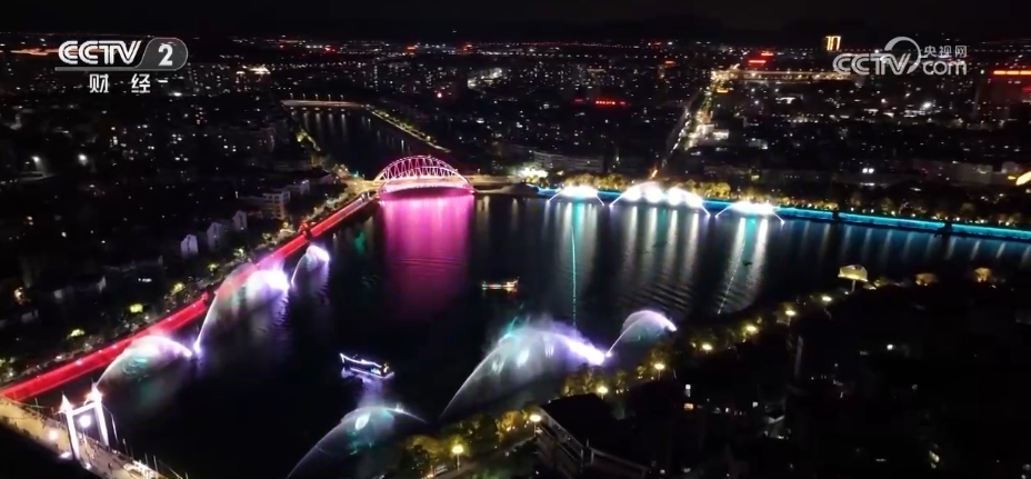 夜幕降臨,浙江諸暨的浣紗江畔上演著一場穿越古今的夜游盛宴。隨著游船的行進,一場場精心編排的沉浸式演出在光影交錯中上演。游客們可以坐在船艙內(nèi)邊看演出邊欣賞兩岸風光,仿佛置身于一幅流動的畫卷中。