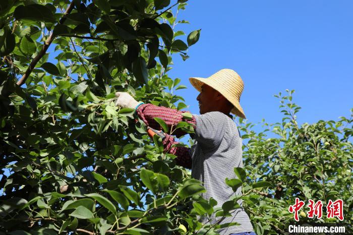 “入夏以來,為了讓果樹把營養(yǎng)集中到果實(shí)成熟上,我們需要把多余的枝條給剪掉。”工人趙開昆說,5月下旬就開始在香梨園里陸續(xù)修剪。
