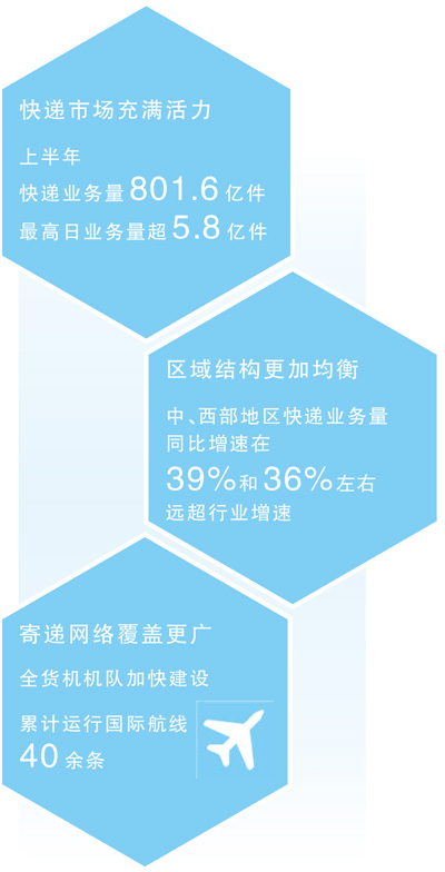 “上半年,市場發(fā)展動力強勁,行業(yè)統(tǒng)籌全網(wǎng)資源,在有效滿足多樣化寄遞需求的同時,助力消費需求持續(xù)釋放。”國家郵政局有關負責人表示。