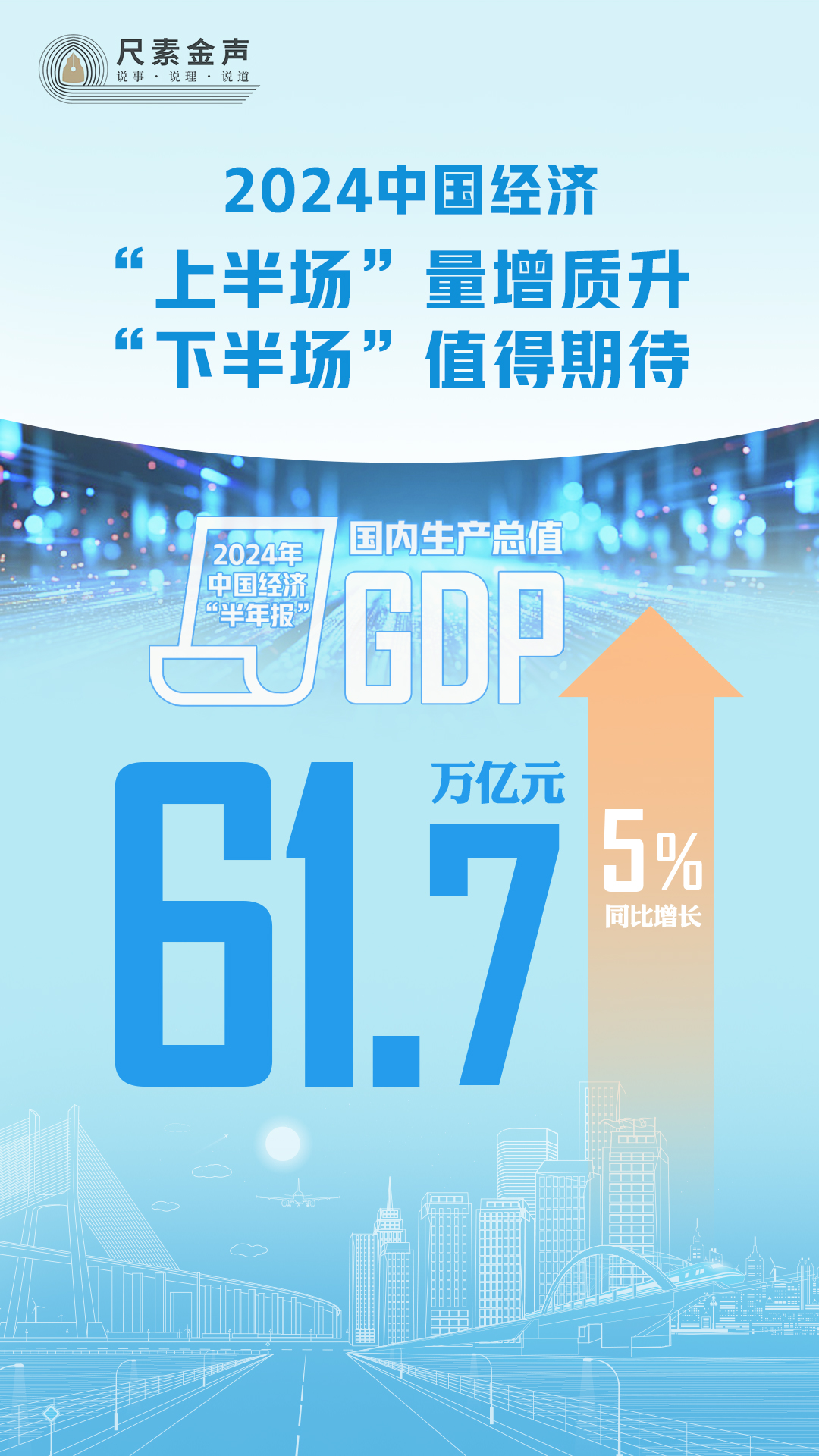 正在北京舉行的黨的二十屆三中全會,將重點研究進一步全面深化改革、推進中國式現(xiàn)代化。改革的“時代新篇”萬眾矚目,中國的發(fā)展也令人高度關(guān)注——同日,國家統(tǒng)計局發(fā)布2024年中國經(jīng)濟“半年報”:國內(nèi)生產(chǎn)總值(GDP)61.7萬億元,同比增長5%。結(jié)合二季度國內(nèi)外形勢,預計上半年中國經(jīng)濟增速仍將保持領(lǐng)先,仍是世界經(jīng)濟增長的重要引擎和穩(wěn)定力量。
