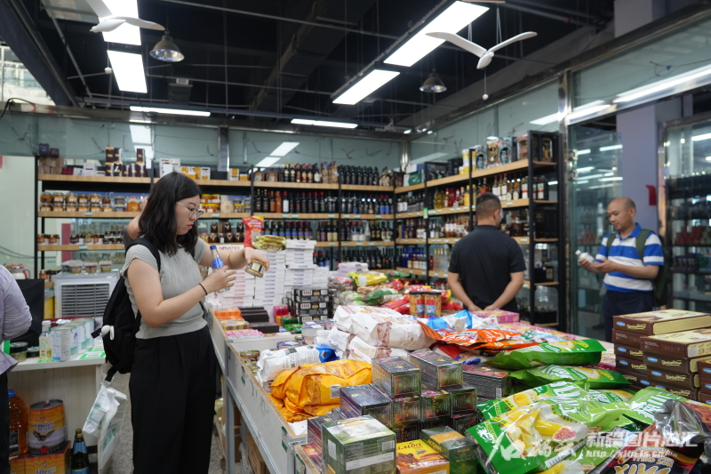 7月12日,游客正在巴克圖中哈邊民互市貿(mào)易區(qū)內(nèi)的絲路文化商品城購(gòu)物。代姣美攝