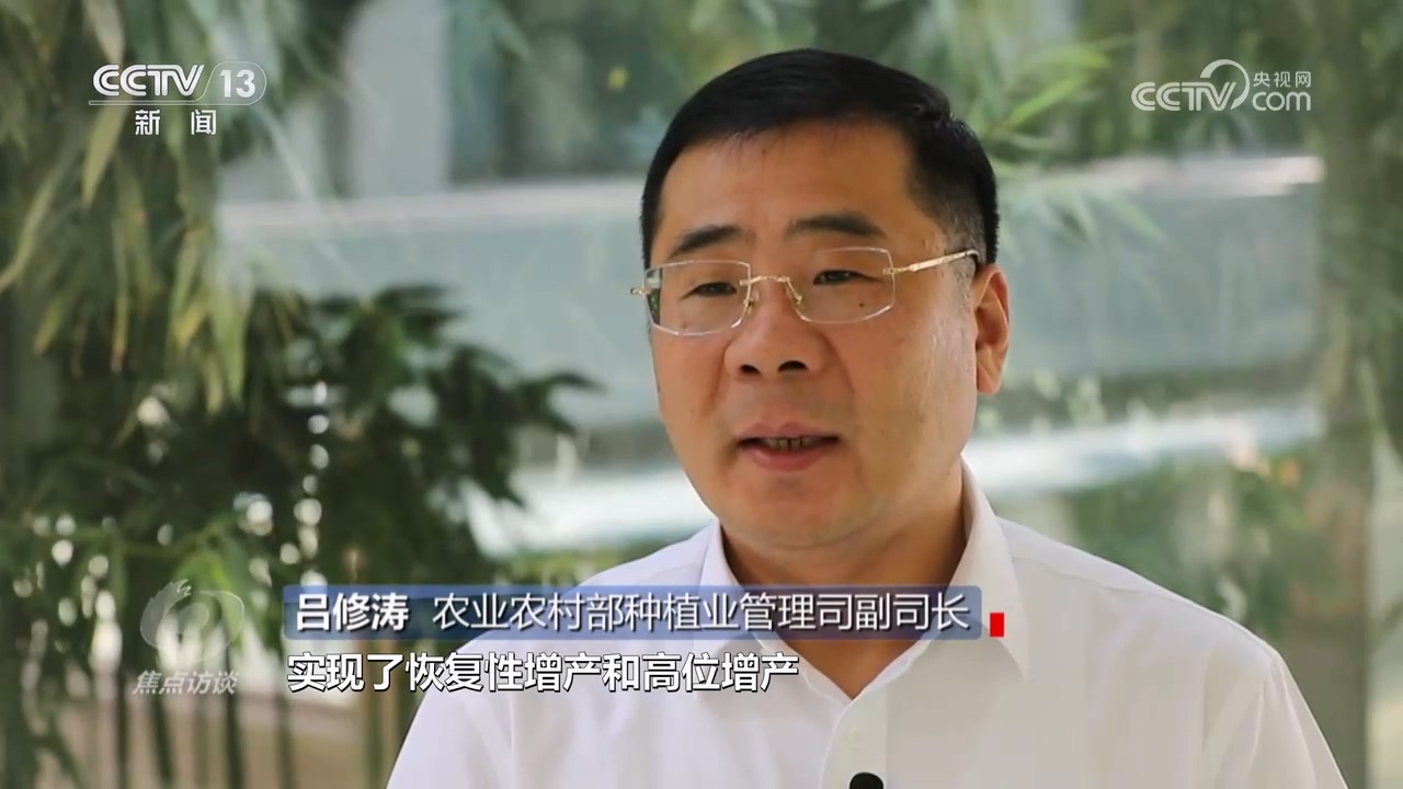 農(nóng)業(yè)農(nóng)村部種植業(yè)管理司副司長(zhǎng)呂修濤:“今年的“三夏”生產(chǎn)可以用“過五關(guān)斬六將”來形容,克服了一系列風(fēng)險(xiǎn)和挑戰(zhàn),實(shí)現(xiàn)了恢復(fù)性增產(chǎn)和高位增產(chǎn),這是今年夏糧一個(gè)非常突出的成果?!?/p>