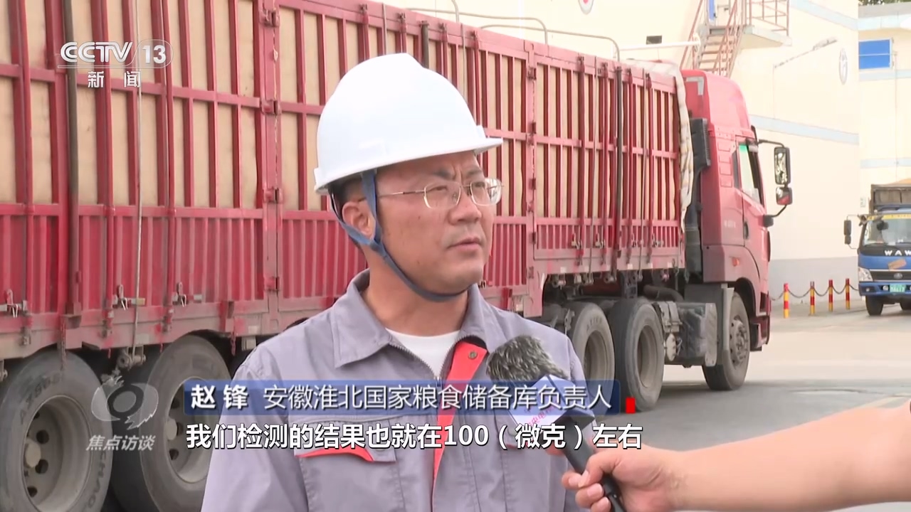 安徽淮北國(guó)家糧食儲(chǔ)備庫負(fù)責(zé)人趙鋒:“嘔吐毒素標(biāo)準(zhǔn)是每一千克小于1000微克,我們檢測(cè)的結(jié)果也就在100微克左右,有的檢不出來。玉米赤霉烯酮(標(biāo)準(zhǔn))是每一千克小于60微克,檢測(cè)結(jié)果基本上在10微克以內(nèi),小麥的質(zhì)量非常好?!?/p>