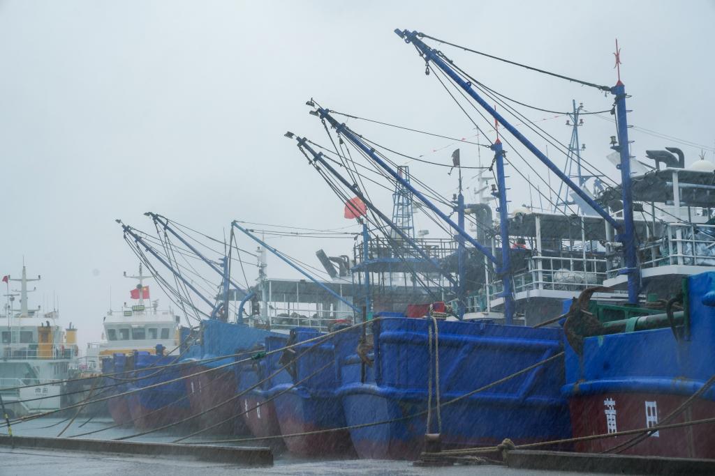 7月25日下午,在位于福建省莆田市秀嶼區(qū)埭頭鎮(zhèn)的石城國家一級漁港,今年第3號臺風“格美”的外圍風圈已經襲來。七八級的陣風夾雜著豆大的雨點打在臉上,裹挾著三四米高的海浪拍擊著護堤,激起白茫茫一片水花。漁港里,100多艘大小船舶已在24日中午12點前回港,呈“半月環(huán)抱”狀整齊停泊,船舶間已用纜繩加固。