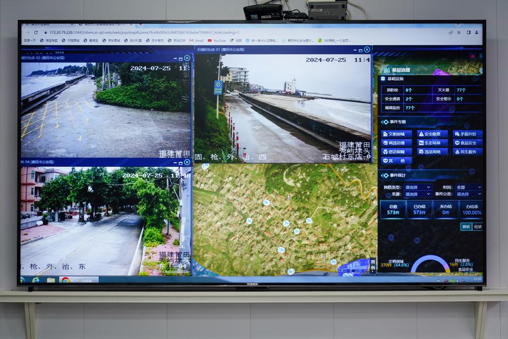 25日中午,莆田市秀嶼區(qū)埭頭鎮(zhèn)石城村數字平臺顯示的實時視頻信息。肖和勇 攝