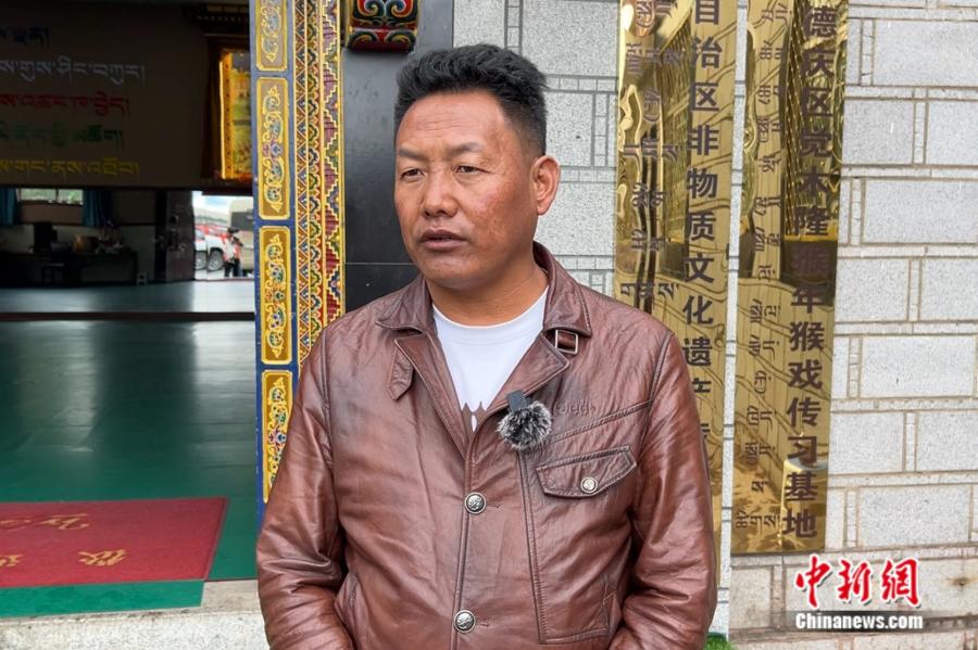 覺木隆藏戲現(xiàn)任團(tuán)長、西藏自治區(qū)級非遺代表性傳承人洛桑扎西。 中新網(wǎng)記者 陳文韜 攝