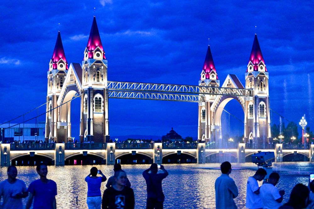 在伊犁哈薩克自治州伊寧市喀贊其民俗旅游區(qū),游客在特色民宿拍照打卡(7月27日攝)。