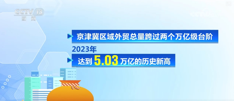 京津冀區(qū)域外貿(mào)總量跨過兩個(gè)萬億級臺(tái)階,2023年達(dá)到5.03萬億元的歷史新高。