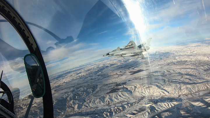 北部戰(zhàn)區(qū)空軍某旅組織晝間飛行訓(xùn)練(2024年1月2日攝,視頻截圖)。新華社發(fā)(蓋世龍 攝)