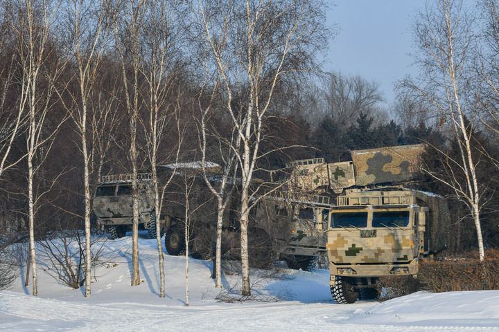 聯(lián)勤保障部隊某汽車運輸旅運輸分隊開展戰(zhàn)地駕駛課目訓(xùn)練(2024年1月2日攝)。新華社發(fā)(趙佳慶 攝)