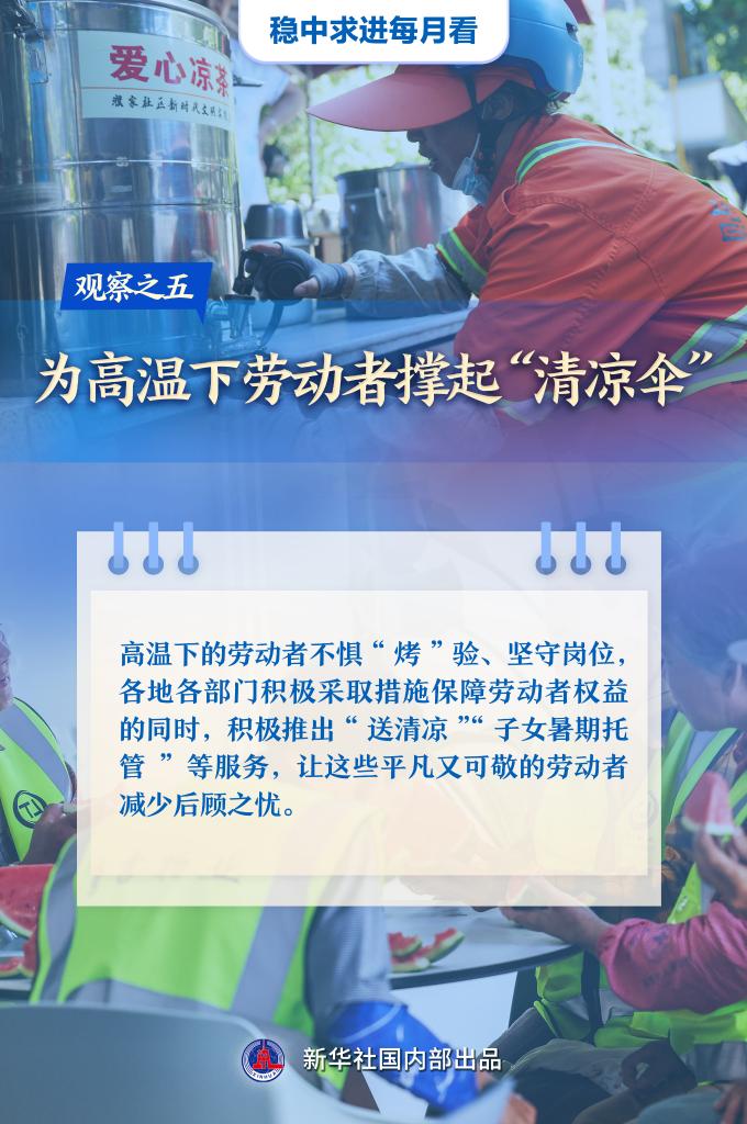 【記者觀察】高溫下的勞動者不懼“烤”驗、堅守崗位,各地各部門積極采取措施保障勞動者權(quán)益的同時,積極推出“送清涼”“子女暑期托管”等服務,讓這些平凡又可敬的勞動者減少后顧之憂。