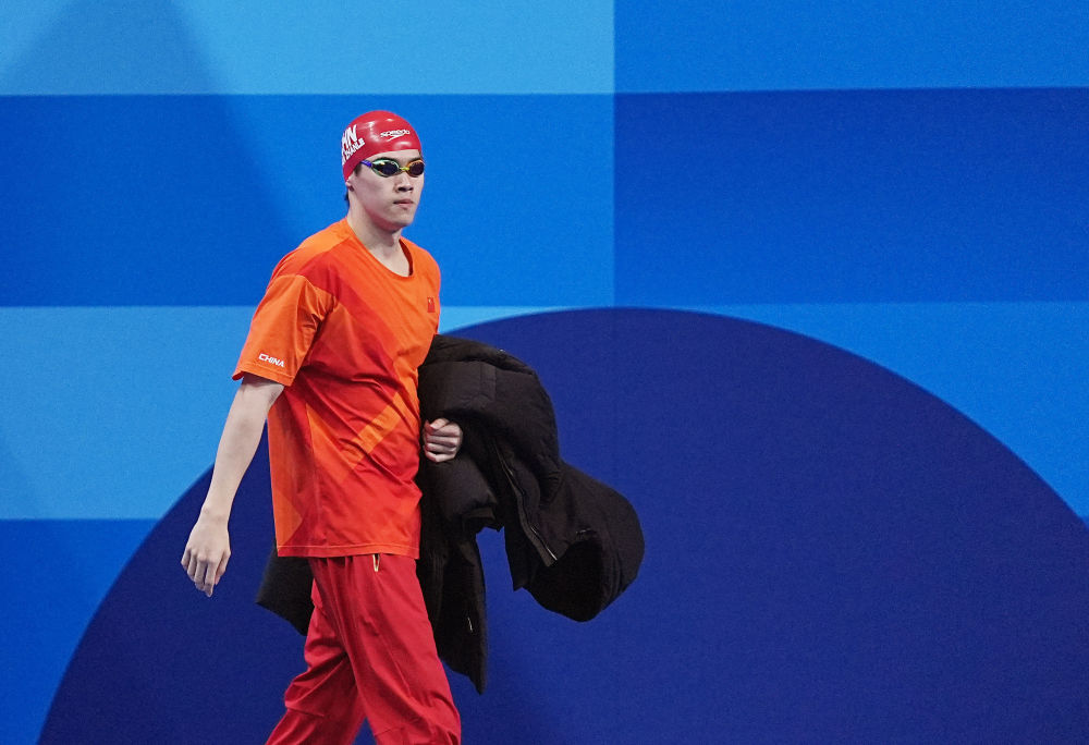 ↑中國選手潘展樂在比賽前入場。