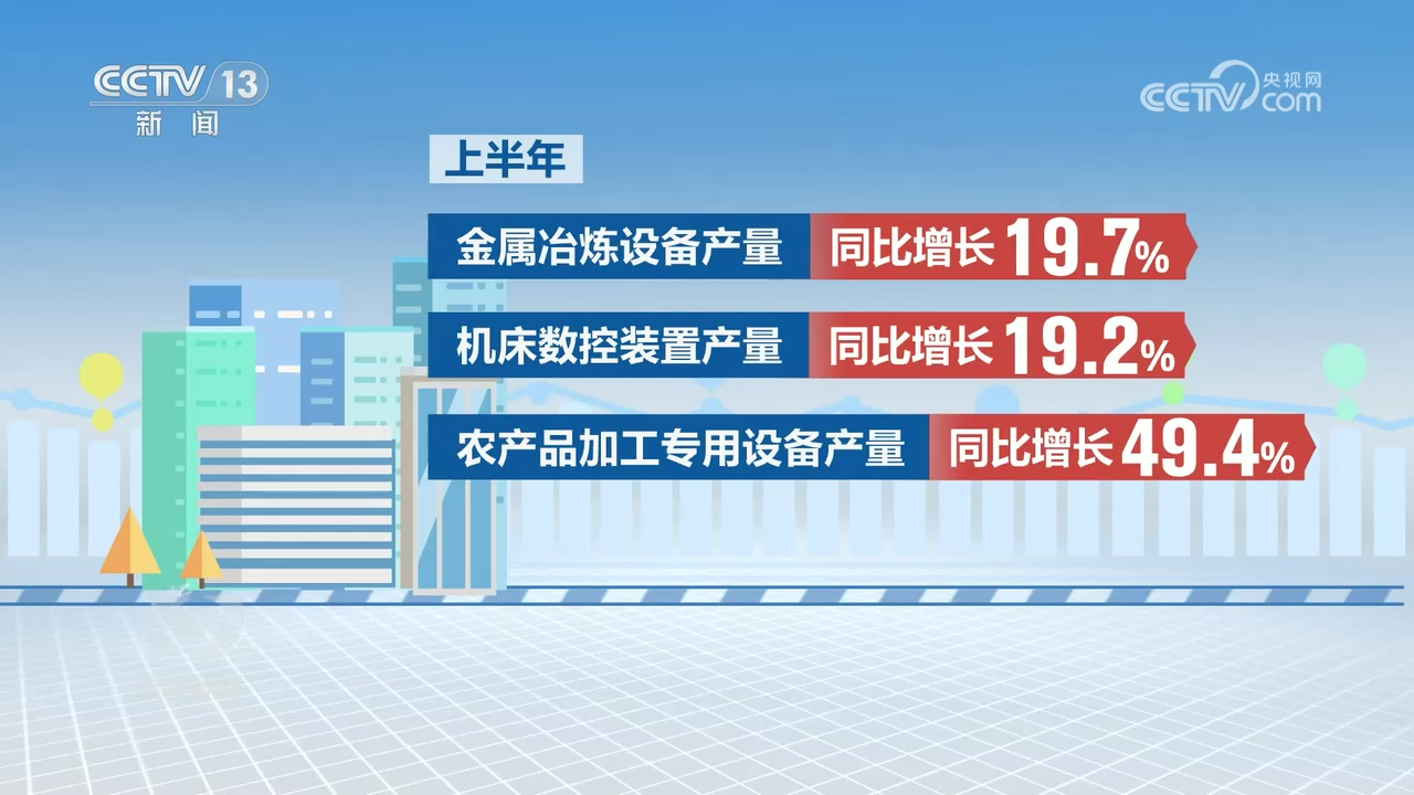 今年以來,在各方共同努力下,推動(dòng)大規(guī)模設(shè)備更新和消費(fèi)品以舊換新工作取得良好開局。一方面,大規(guī)模設(shè)備更新帶動(dòng)了相關(guān)設(shè)備生產(chǎn)較快增長,惠及多個(gè)重點(diǎn)行業(yè)。上半年,規(guī)模以上金屬冶煉設(shè)備、機(jī)床數(shù)控裝置、農(nóng)產(chǎn)品加工專用設(shè)備產(chǎn)量同比分別增長19.7%、19.2%、49.4%。另一方面,消費(fèi)品以舊換新政策引導(dǎo)居民消費(fèi)潛力有序釋放,對(duì)拉動(dòng)汽車、家電等耐用消費(fèi)品銷量增長起到了一定的“催化”作用。上半年,限額以上單位,也就是年主營業(yè)務(wù)收入達(dá)到500萬元及以上的零售企業(yè),家用電器和音像器材類商品零售額同比增長3.1%,比上年同期加快2.1個(gè)百分點(diǎn)。