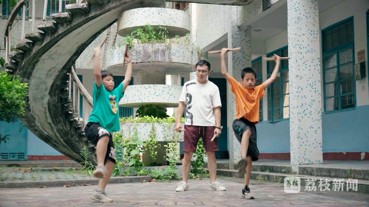 為了解決缺兵少將的問題,也讓更多年輕人愛上英歌舞,2017 年,陳來發(fā)教練力排眾議,打破“傳內(nèi)不傳外、傳男不傳女”的舊俗,推動(dòng)英歌參與“非遺進(jìn)校園”活動(dòng),于普寧市南山小學(xué)組建一支少兒英歌隊(duì),面向全校招生,首批報(bào)名者多達(dá) 380 余人。自此,陳揚(yáng)波也開始站在學(xué)生面前,成為了普寧英歌向下傳播的一個(gè)紐帶。