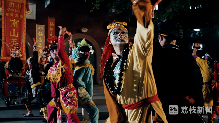 因大部分經(jīng)驗(yàn)豐富的隊(duì)員前往倫敦,陳揚(yáng)波選擇留在家鄉(xiāng),引領(lǐng)其余年輕隊(duì)員繼續(xù)進(jìn)行他們自幼熟知的游街演出。舞槌似畫戟,步伐若戰(zhàn)馬,身著戲服的隊(duì)員們將自己的故事融入英歌之中,用行動(dòng)詮釋著“一朝拾起英歌槌,一生便是英歌人”。
