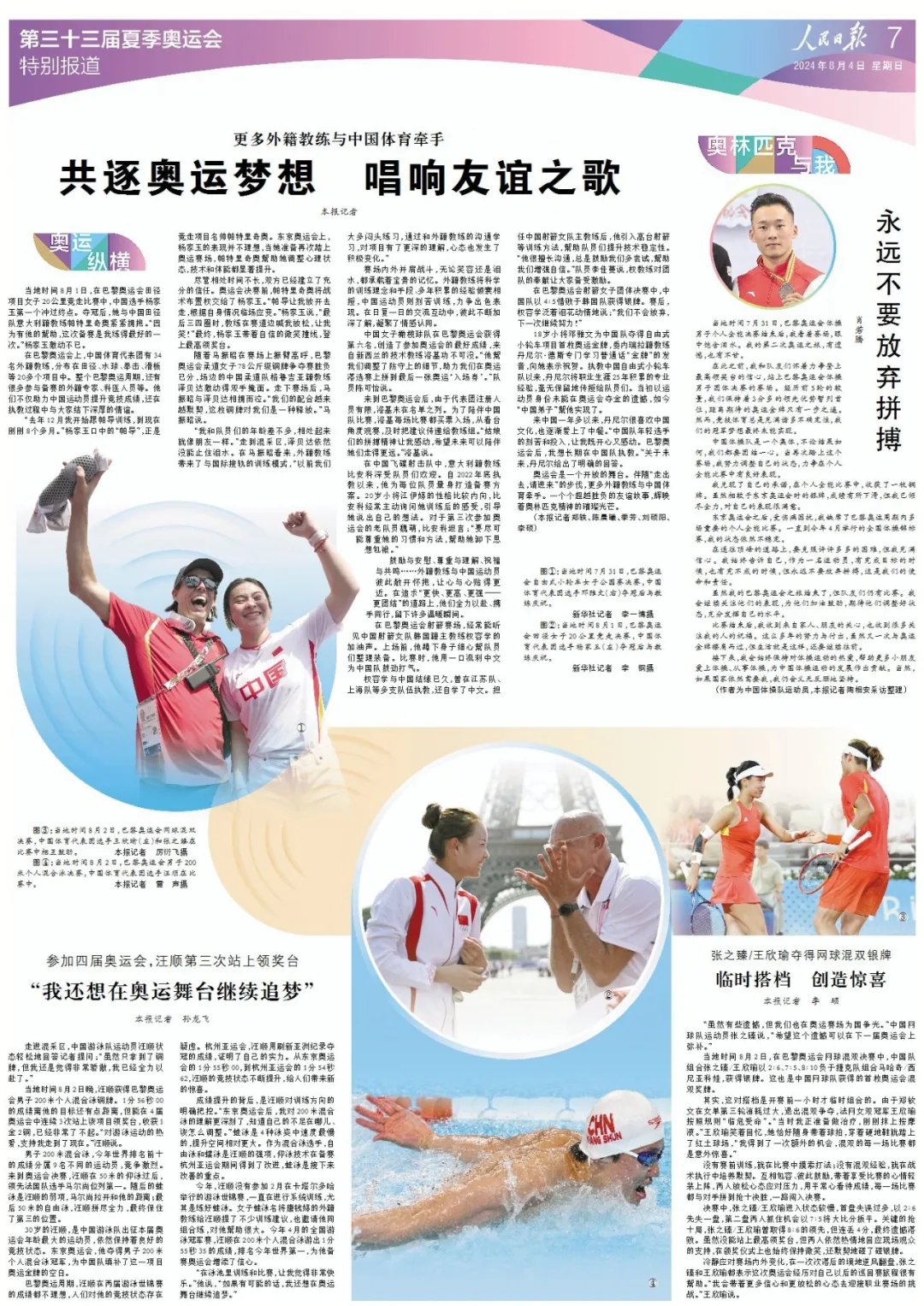 鼓勵(lì)與安慰、尊重與理解、祝福與共鳴……外籍教練與中國(guó)運(yùn)動(dòng)員彼此敞開(kāi)懷抱,讓心與心貼得更近。在追求“更快、更高、更強(qiáng)——更團(tuán)結(jié)”的道路上,他們?nèi)σ愿?、攜手同行,留下許多溫暖瞬間。