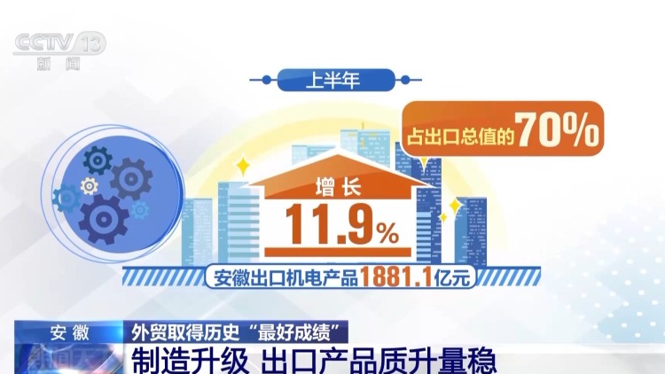 今年上半年,安徽的貨物貿易進出口總值3967.8億元,同比增長7.4%,創(chuàng)下歷史同期最好水平。安徽外貿取得歷史“最好成績”,背后的動力是什么?