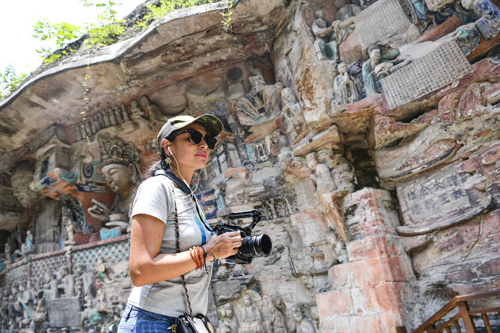 外籍游客在重慶大足石刻景區(qū)游覽(2024年7月19日攝)?!⌒氯A社記者 王全超 攝