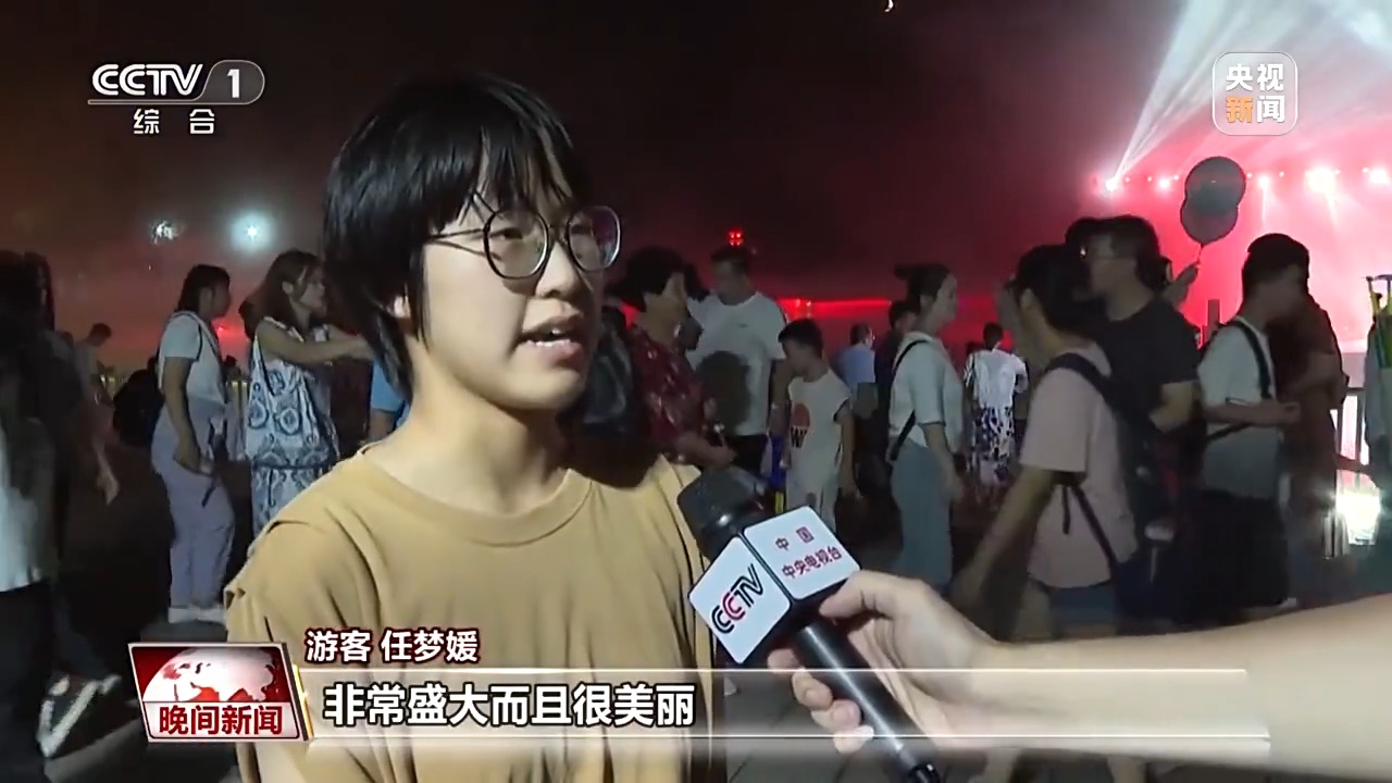 游客 任夢媛:非常盛大而且很美麗,比煙花還漂亮、絢爛,我拍了很多視頻照片,打算回家之后分享給我的家人朋友。