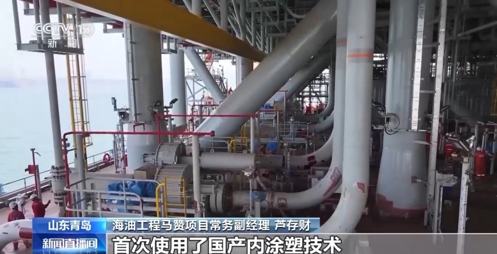 海油工程馬贊項(xiàng)目常務(wù)副經(jīng)理 蘆存財(cái):我們現(xiàn)在看到的是36寸原油外輸管線,首次使用了國(guó)產(chǎn)內(nèi)涂塑技術(shù),解決硫化氫高的同時(shí),實(shí)現(xiàn)了25年的長(zhǎng)期安全服役。