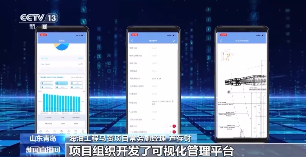 海油工程馬贊項(xiàng)目常務(wù)副經(jīng)理 蘆存財(cái):對(duì)一個(gè)總重近2萬(wàn)噸的超級(jí)組塊,平臺(tái)材料、設(shè)備成千上萬(wàn),項(xiàng)目組織開(kāi)發(fā)了可視化管理平臺(tái),通過(guò)數(shù)字模擬、建造孿生技術(shù)實(shí)現(xiàn)建造全流程的數(shù)字化管控。