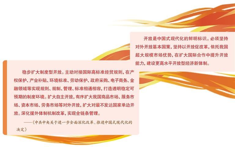 《決定》提出“穩(wěn)步擴(kuò)大制度型開放”,要求主動(dòng)對接國際高標(biāo)準(zhǔn)經(jīng)貿(mào)規(guī)則?!稕Q定》作出的一系列重要部署影響廣泛、意義深遠(yuǎn)。