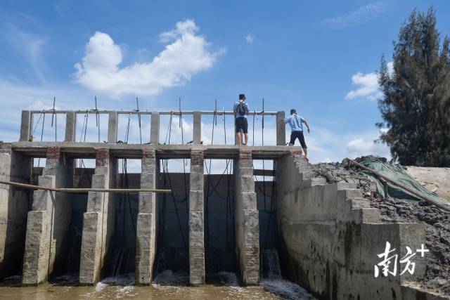 民警涉水前往麻章區(qū)湖光鎮(zhèn)料村一海邊養(yǎng)殖塘,查看紅樹林復種情況。