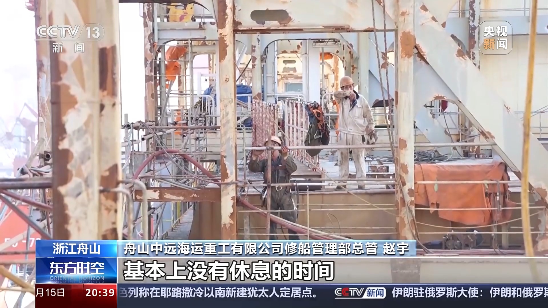 舟山中遠(yuǎn)海運(yùn)重工有限公司修船管理部總管 趙宇:到目前為止,我個人負(fù)責(zé)的船只,走一條來一條,基本上沒有休息的時間。對公司來說業(yè)務(wù)增加了、效益好了,那對我們個人來說,個人的錢包就鼓了。