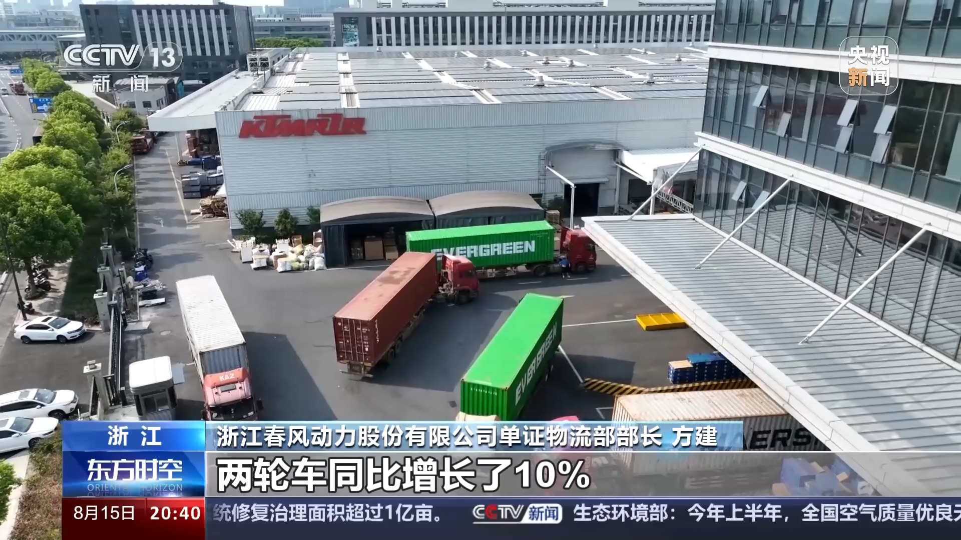 浙江春風(fēng)動力股份有限公司單證物流部部長 方建:上半年我們出口四輪車同比增長了40%,兩輪車同比增長了10%,然后集裝箱大概出運(yùn)了7700個大柜,同比增長了27%。