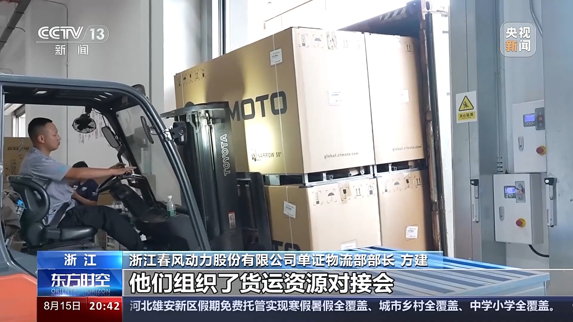 浙江春風(fēng)動力股份有限公司單證物流部部長 方建:多方面去尋求這種資源的匹配,然后政府這邊也積極給我們匹配一些資源。他們組織了貨運(yùn)資源對接會,我們在這里面也匹配了一些臨時的艙位。