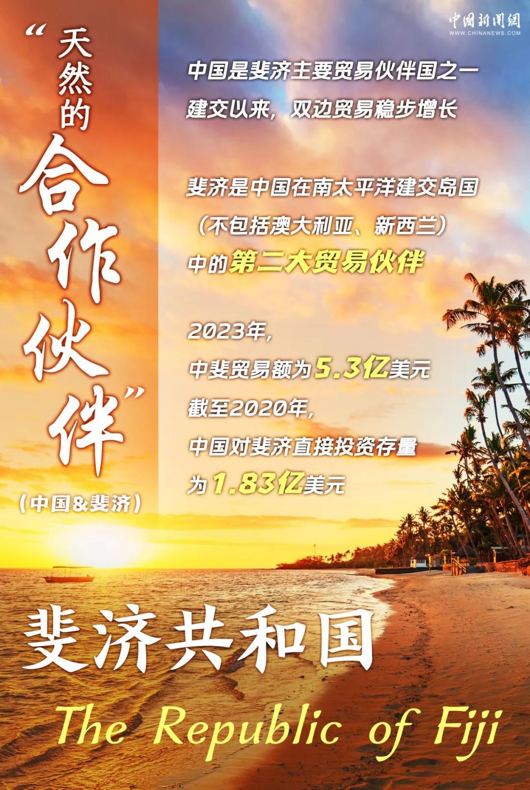 斐濟是中國在太平洋島國地區(qū)的真誠朋友和重要伙伴,雙方平等相待、友好合作。中斐兩國豐碩的交流合作成果,為兩國人民帶來福祉。