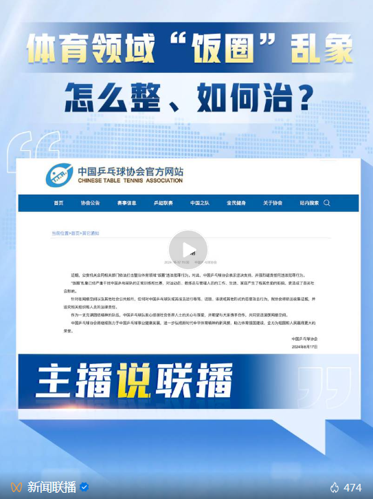 這兩天,中國乒協(xié)、中國體操協(xié)會相繼發(fā)聲,譴責(zé)體育領(lǐng)域的“飯圈”亂象。這一亂象到底該怎么整?如何治?點(diǎn)擊視頻↓↓↓