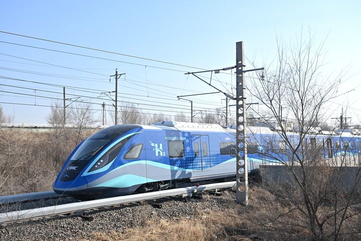2024年3月21日,我國(guó)首列氫能源市域列車在位于長(zhǎng)春的中車長(zhǎng)客試驗(yàn)線進(jìn)行運(yùn)行試驗(yàn)。新華社發(fā)(中車長(zhǎng)客股份公司提供)