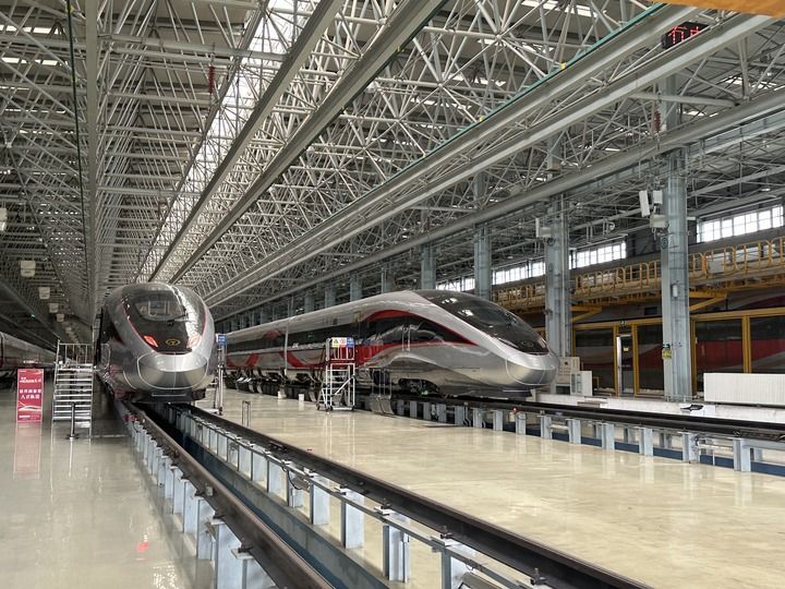 這是在中車長(zhǎng)客國(guó)鐵事業(yè)部制造中心拍攝的復(fù)興號(hào)智能動(dòng)車組(2024年7月17日攝)。新華社發(fā)