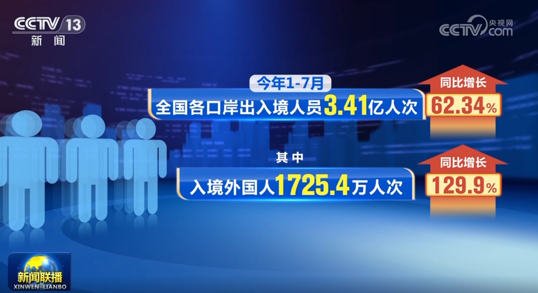 積極促進(jìn)人員交流交往,先后出臺(tái)110余項(xiàng)便利外籍人員來(lái)華政策措施。目前,144小時(shí)過(guò)境免簽政策適用范圍已增至37個(gè)口岸、54個(gè)國(guó)家。今年1—7月,全國(guó)各口岸出入境人員3.41億人次,同比增長(zhǎng)62.34%,其中入境外國(guó)人1725.4萬(wàn)人次,同比增長(zhǎng)129.9%。
