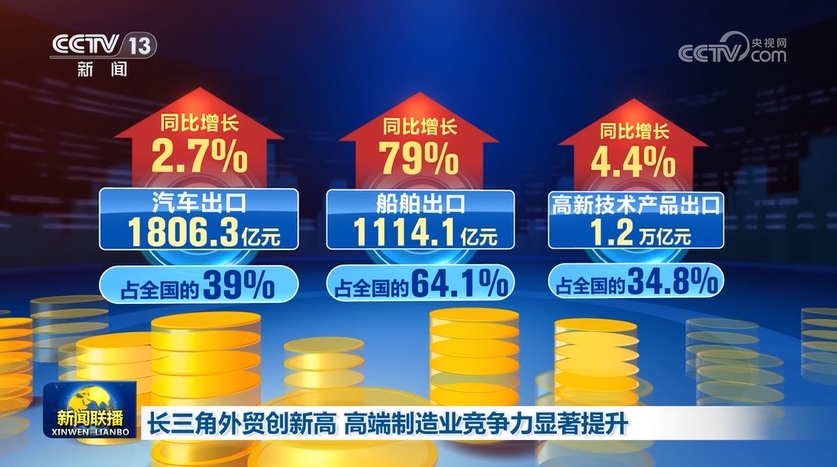 海關(guān)最新數(shù)據(jù)顯示,今年前7個月,長三角地區(qū)進(jìn)出口規(guī)模創(chuàng)歷史新高,汽車、船舶、數(shù)控機(jī)床等產(chǎn)品出口亮眼,長三角地區(qū)高端制造業(yè)國際競爭力加速提升。