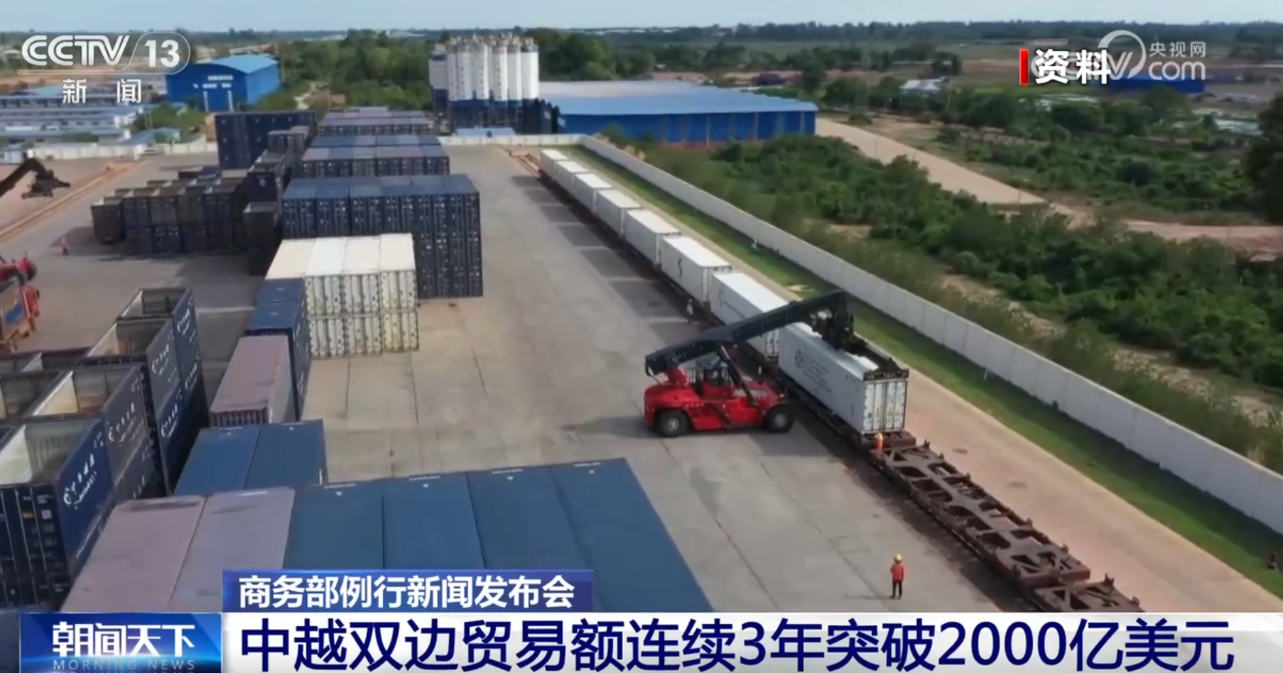 在8月22日召開(kāi)的商務(wù)部例行新聞發(fā)布會(huì)上,新聞發(fā)言人表示,近年來(lái),中越雙邊貿(mào)易快速發(fā)展,中國(guó)是越南第一大貿(mào)易伙伴,中越雙邊貿(mào)易額連續(xù)3年突破2000億美元。
