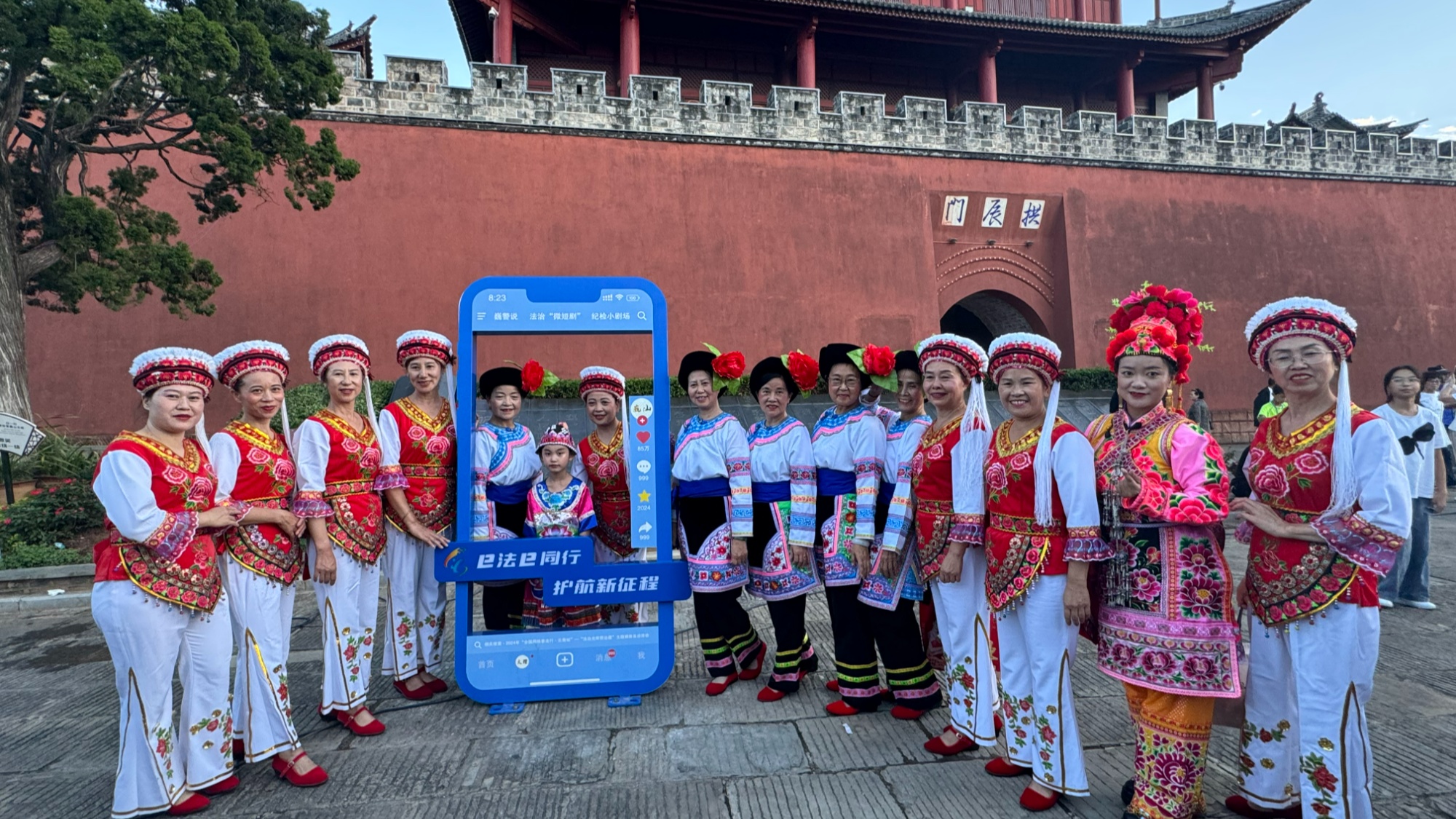 在巍山古城拱辰樓廣場,經(jīng)常有“法治匯演”在這里上演。昨天,巍山的幾只民族文藝隊表演了《白族霸王鞭》舞蹈、《平安巍山》快板、《是你》聲樂、《阿克哩哈》舞蹈等節(jié)目,巧妙地將普法內容融入到其中,以歌舞傳遞法治的力量,群眾載歌載舞,現(xiàn)場氛圍濃烈。